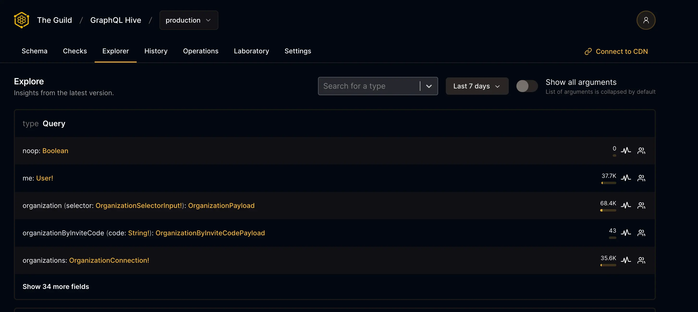 Hive is essential to us handling more than 750M GraphQL requests every month. We ship with certainty that schema changes will not break clients. The atLeastOnceSampler is crucial to capture telemetry from less-often run operations. The schema explorer condenses hours of searching through Github for client usage down to minutes.